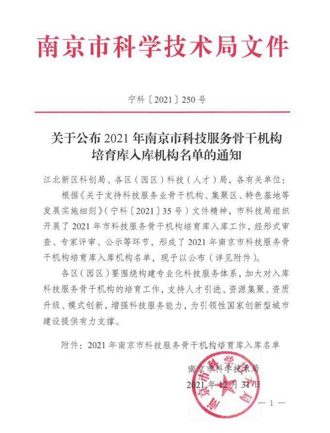| 公司成功获批2021年南京市科技服务骨干机构作者:admin 来源: 日期:2022-1-5 13:41:05 人气: